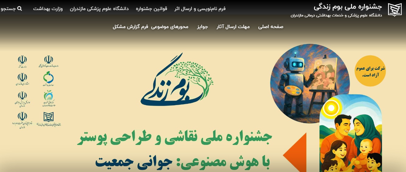 جشنواره ملی «بوم زندگی» با حمایت معاونت بهداشت وزارت بهداشت، درمان و آموزش پزشکی و به همت دانشگاه علوم پزشکی مازندران، در دو حیطه طراحی پوستر و نقاشی با استفاده از هوش مصنوعی و با موضوع جوانی جمعیت، برگزار می شود.