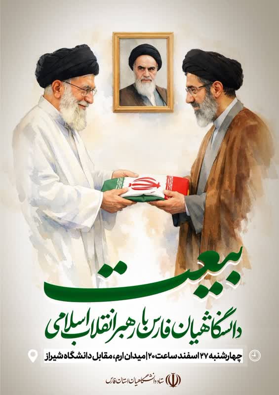 در پی شهادت قائد امت؛ رهبر شهید انقلاب اسلامی حضرت آیت الله العظمی امام خامنه‌ای (قدس سره الشریف) و بیعت با رهبر عالی‌قدر و عظیم الشأن انقلاب اسلامی حضرت آیت الله سید مجتبی خامنه‌ای (حفظه الله) اجتماع عظیم دانشگاهیان استان فارس در روز چهارشنبه ۲۷ اسفندماه ۱۴۰۴ ساعت 20:00 در مکان شیراز، میدان ارم (مقابل درب ورودی دانشگاه شیراز) برگزار می‌گردد.