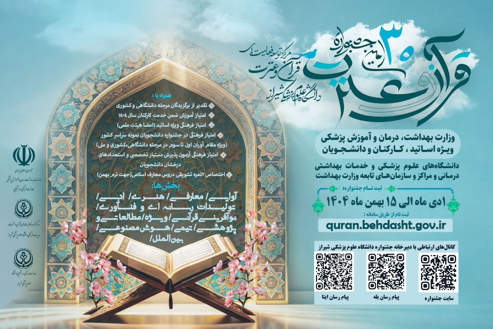 نام نویسی در سی امین جشنواره قرآن و عترت دانشگاه های علوم پزشکی کشور، تا 15 بهمن ادامه دارد.