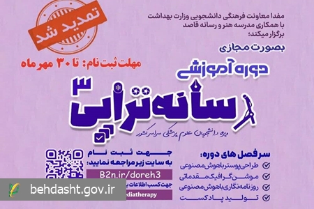 مهلت ثبت نام برای حضور در دوره‌های مجازی «رسانه تراپی ۳» تا پایان مهر ماه تمدید شد