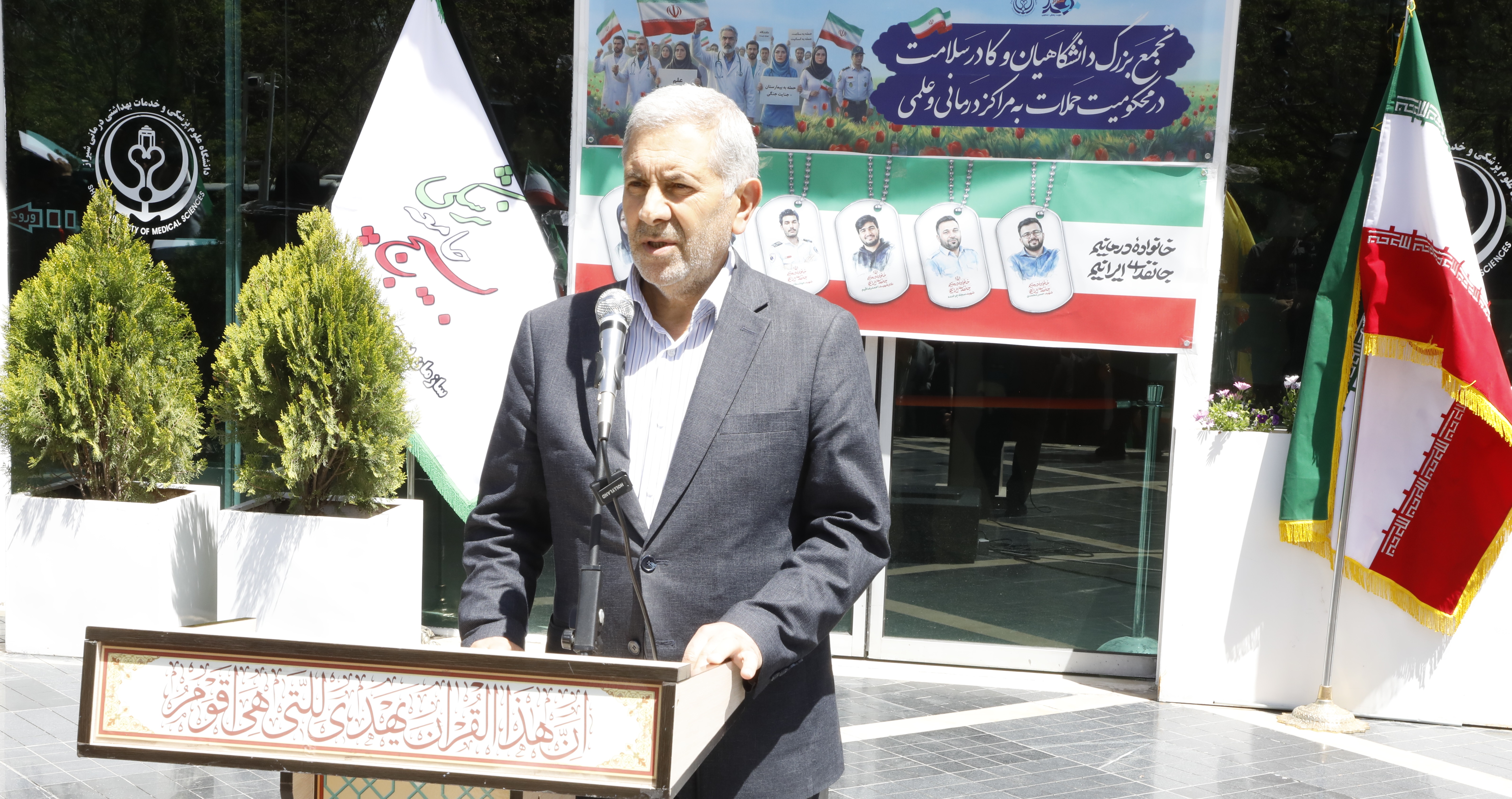 رییس دانشگاه علوم پزشکی شیراز در تجمع بزرگ دانشگاهیان و کادر سلامت فارس در محکومیت حملات به مراکز درمانی و علمی کشور؛