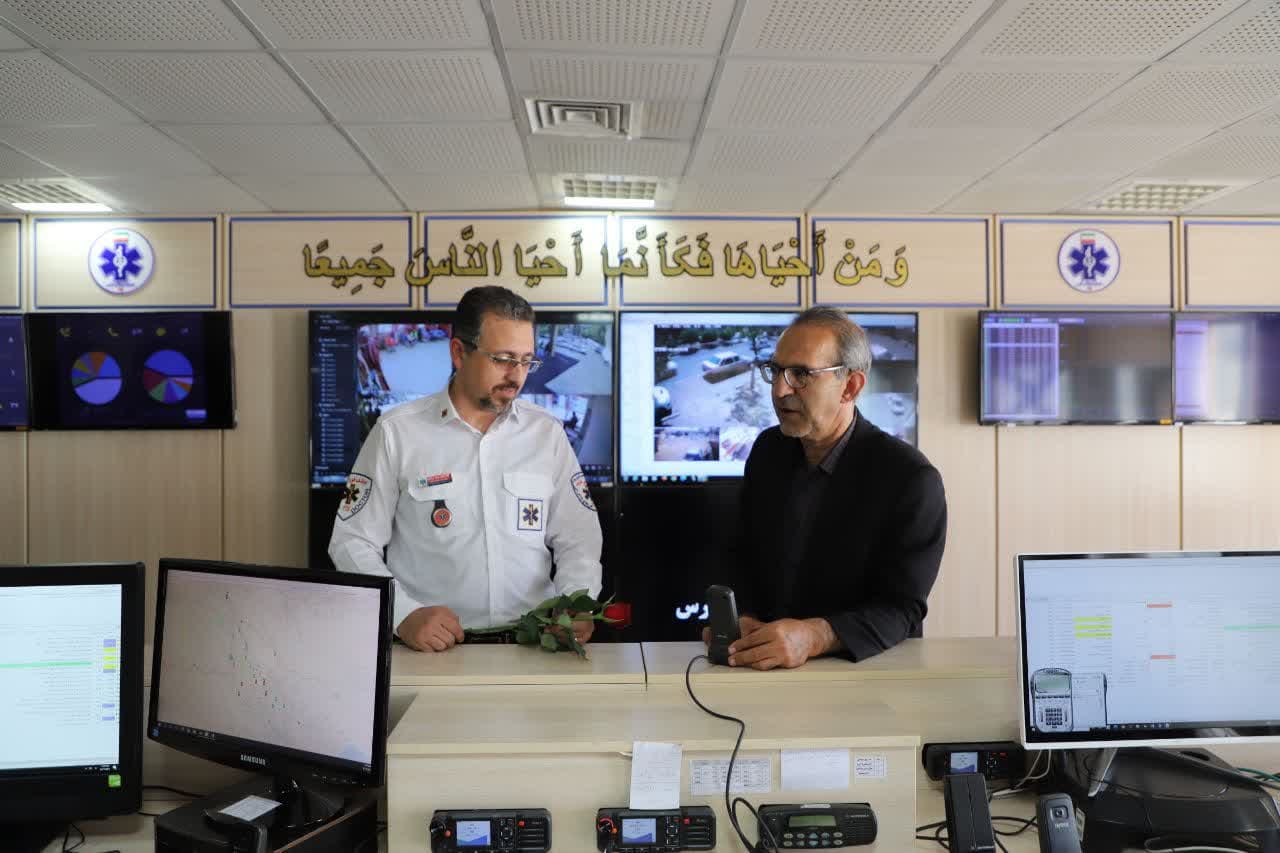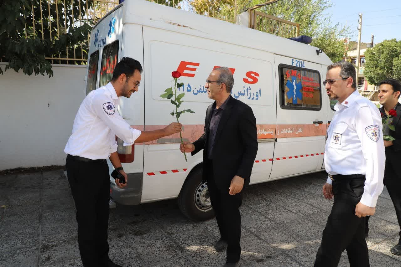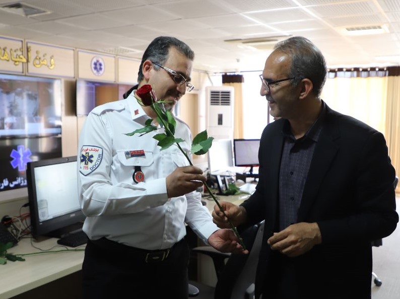 رئیس دانشگاه علوم پزشکی شیراز همچنین طی ارتباط بیسیم با نیروهای اورژانس، این روز را به تلاشگران این حوزه تبریک گفت و برای آنان آرزوی سلامتی کرد.